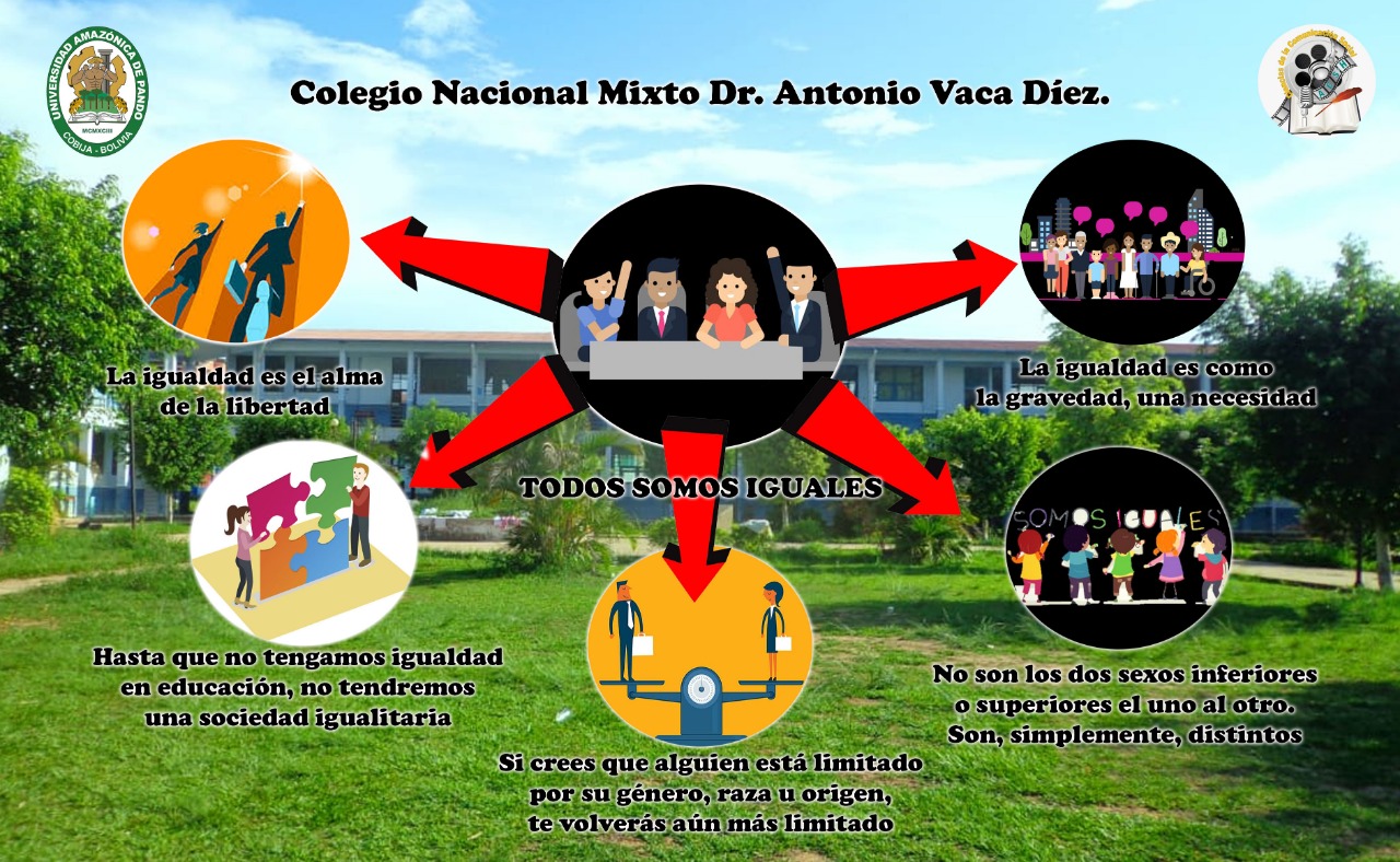 La equidad de género es un aspecto principal en las relaciones interpersonales en un grupo social o centro educativo, su respuesta depende de las acciones que se van fomentando a lo largo de los días en procura de mejores oportunidades. En el colegio Nacional Mixto Dr Antonio Vaca Díez, se promueve la equidad de género a través de sus diferentes actividades académicas, deportivas y culturales.